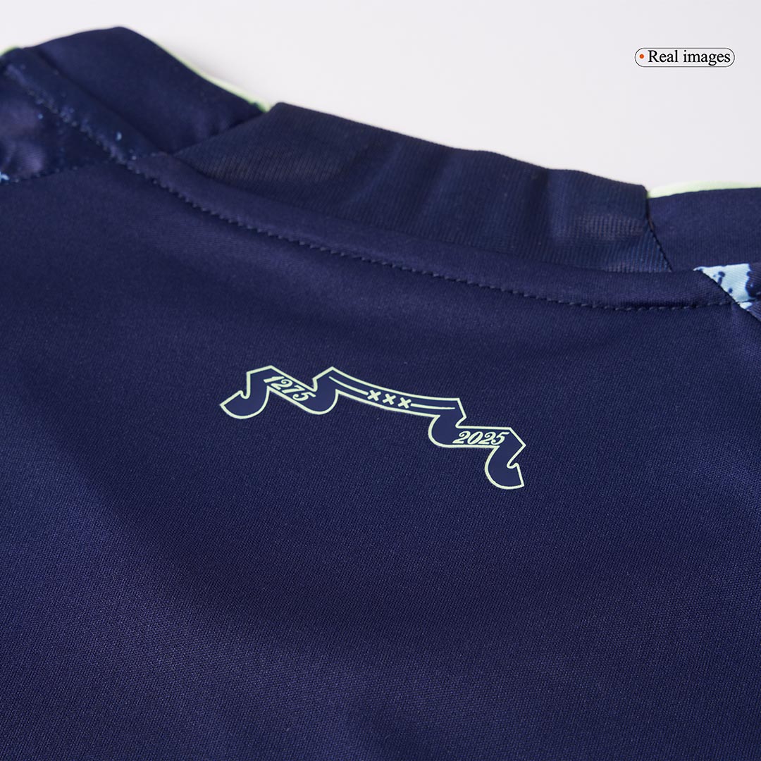 At Gogoalshop, this Ajax jersey comes with full customization options, including 100% official player printing and numbers. Whether you support Steven Bergwijn, Brian Brobbey, or rising talents from the Ajax academy, this Ajax authentic jersey allows you to wear your passion with pride. Available in men’s, women’s, and fan jersey versions, it’s perfect for matchday or casual streetwear.Why choose this Ajax Soccer Jersey?The iconic”Night Sky” design with its wavy blue pattern is paired with fluo green and sky-blue details for a fresh, modern look. Featuring the first-ever monochrome Ajax crest, this lightweight and breathable kit is built for performance. Available as both a replica jersey and an authentic jersey, it’s the perfect choice for fans seeking acheap football jerseywithout compromising on quality.