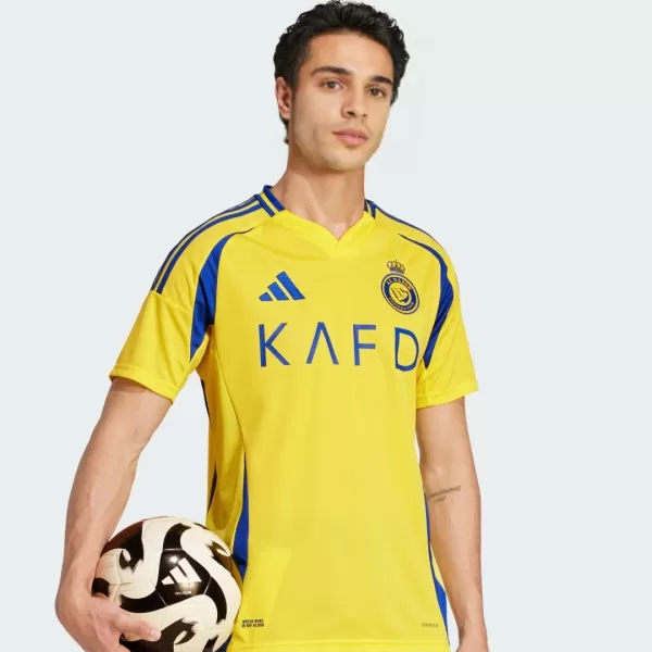 Al Nassr is a powerhouse in Saudi soccer, boasting nine Saudi Professional League titles and a roster of players that includes UEFA Champions League winners Cristiano Ronaldo, Aymeric Laporte and Sadio Mannar. So if you are a fans of one of them, you should getAl Nassrcamisetas futbolwithout hesitation!Al Nassr jerseyfor the 2024/25 season maintains Al Nassr’s jersey traditional yellow color scheme, highlighting the blue details that reflect the club’s heritage.The two bright colors used in the Al Nassr jersey highlight the players’ high spirits and passion for sprinting towards their goal. In addition, the design of the Al Nassr jersey pays homage to the Saudi Arabian culture, incorporating the palm tree and crossed swords symbols. The fitted cut on the camisetas futbol is super perfect to wear in your daily life.