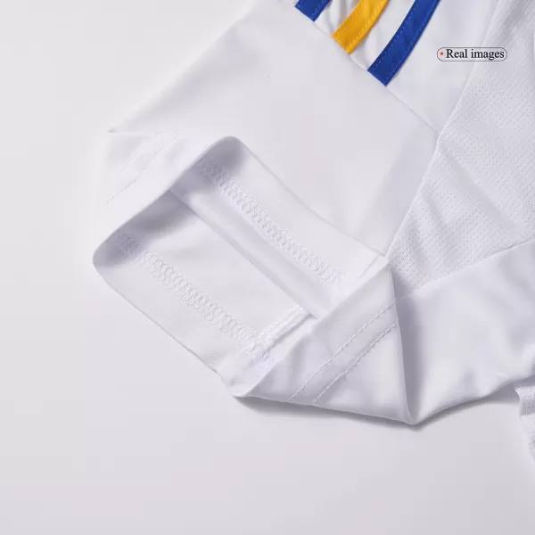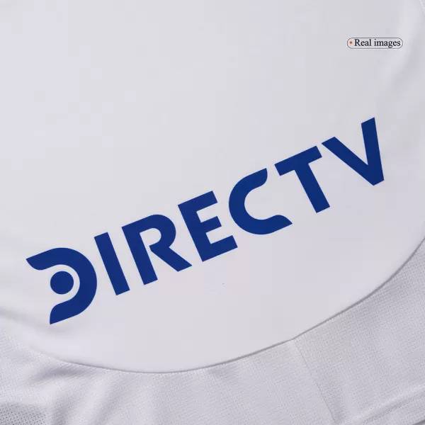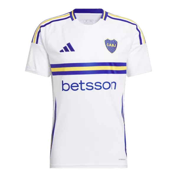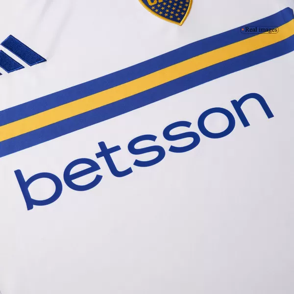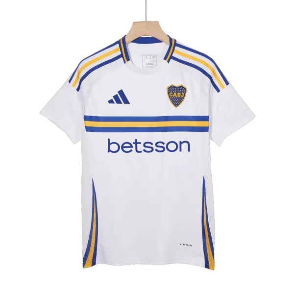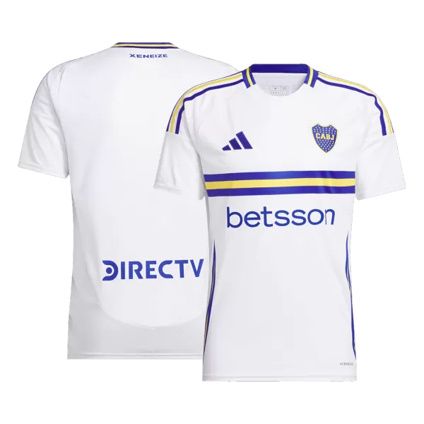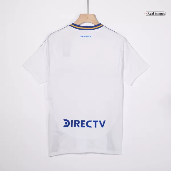 Boca Juniors Away Soccer Jersey 2024/25 OUT NOW! Boca Juniors jersey is designed with white as main color, then complementing with blue and yellow colours. The Boca Juniors jersey 24/25 is inspired by long “tirantes” banners that run down La Bombonera’s stands, which has a huge meannig to Boca Juniors football club. We can see the “XENEIZE” (“GENOESE”) nickname is added on the upper back – are in blue. Blue and yellow accents are designed in the centre, on the shoulders, collar and side panels of Boca Juniors camisetas futbol. It’s time to show your support for the iconic football club with this stylish and high-quality Boca Juniors jersey.The whole Boca Juniors kit is completed with matching white shorts and socks.