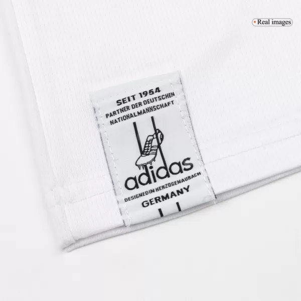 TheGermany Home Soccer Jersey World Cup 2026celebrates legacy and victory, paying homage to the iconic1990 and 2014 World Cup-winning kits. Featuring aclean white basewithblack, red, and yellow accents, thisGermany jerseyshowcases a boldtricolor V-designrunning from the shoulders to the chest—symbolizing unity and strength. Thespecial DFB authentic badgeandAdidas “Adolf Dassler” logoadd an exclusive touch to this modern classic.