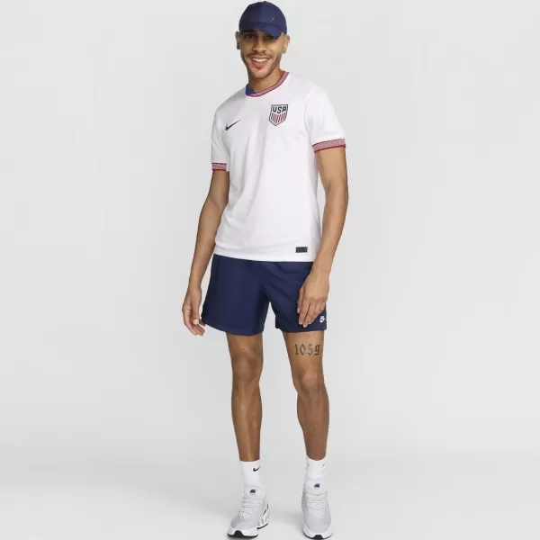 are carefully designed. The collar and cuffs of the nice 24/25 USA home soccer kit are designed with a unique red, blue and white. Once again opting for a clean white base color, the new USA kit Copa America 2024 features a spirit message “One Nation, One Team”. The only difference from the USWNT jersey is that the USWNT version has 4 stars on the top, representing the 4 FIFA World Cup™ titles won by the USWNT.