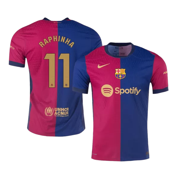 RAPHINHA #11 Barcelona Home Authentic Soccer Jersey – Spotify Logo Without Text